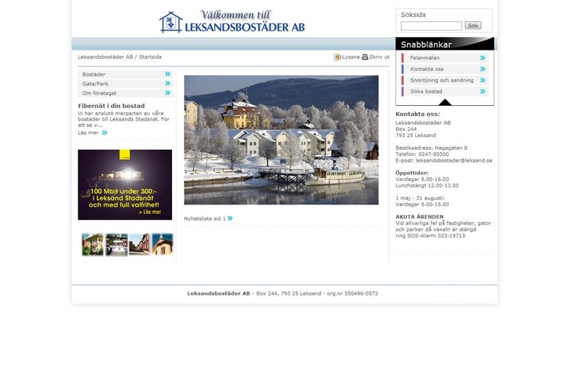 Vi har genomfört en del enklare vidareutveckling av Leksandsbostäders webbplats som är baserad på EPiServer. Bl.a. mindre omdesign och några nya funktioner på startsidan.