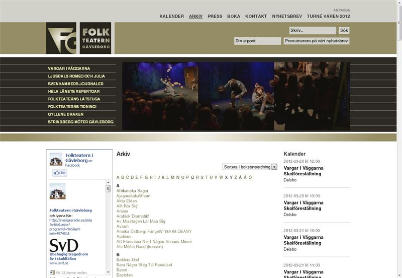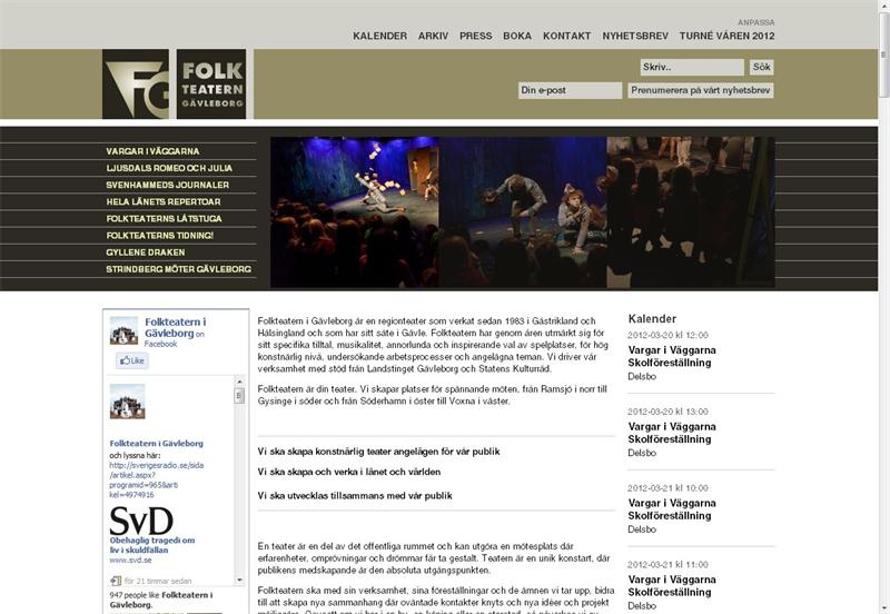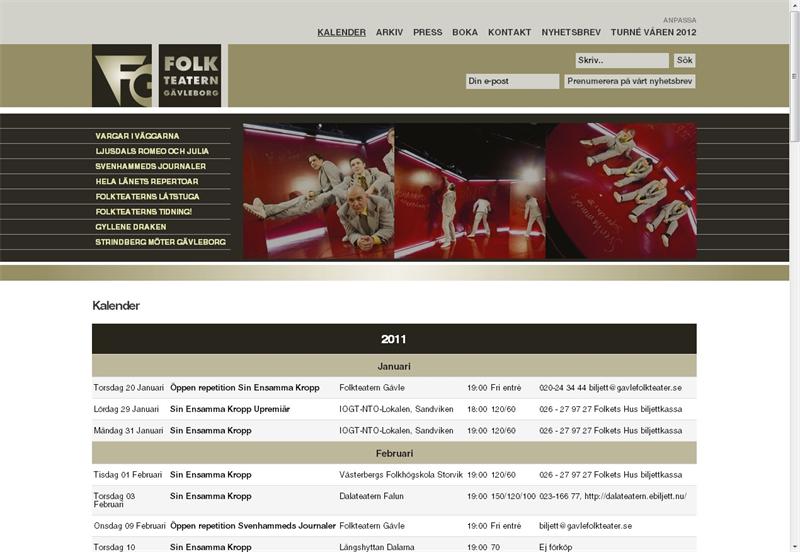Vi har utvecklat en ny webbplats för Folkteatern Gävleborg. Förutom ny design som följer deras nya grafiska profil är den även baserad på webbpubliceringsssystemet Umbraco för att de själva enkelt ska kunna underhålla den.