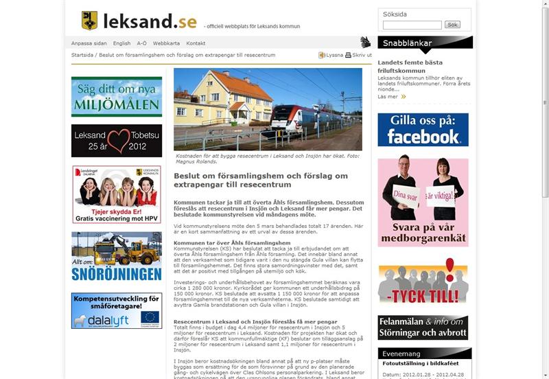 Enklare vidareutveckling av Leksands kommuns webbplats, baserad på EPiServer.Fler möjligheter att lägga in banners, annan sortering av nyheter mm.