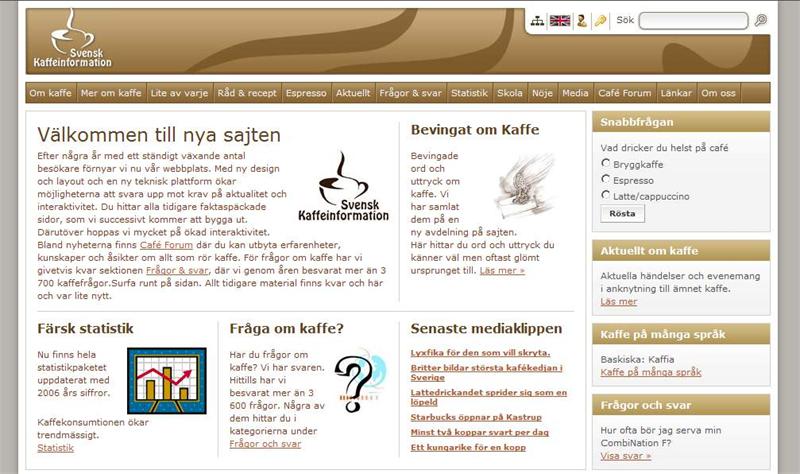 Vi har utvecklat Svensk kaffeinformations webbplats med funktioner bl.a. för sociala nätverk, funktioner för datering men också uppdaterat till den senaste version av EPiServer CMS 6.