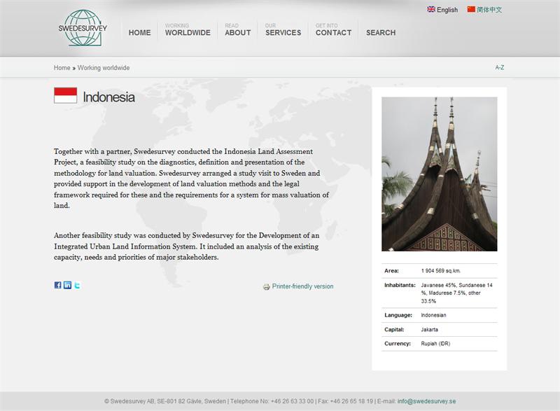 Webbplatsen har även stöd för sökmotoroptimering och är tillgänglighetsanpassad. Swedesurvey har de flesta av sina kunder ute i världen och därför var det även viktigt att webbplatsen inte blev för tung att ladda. Genom återhållsam desing och smart cachning av innehållet har vi lyckats få den att se bra ut och ändå ladda snabbt.