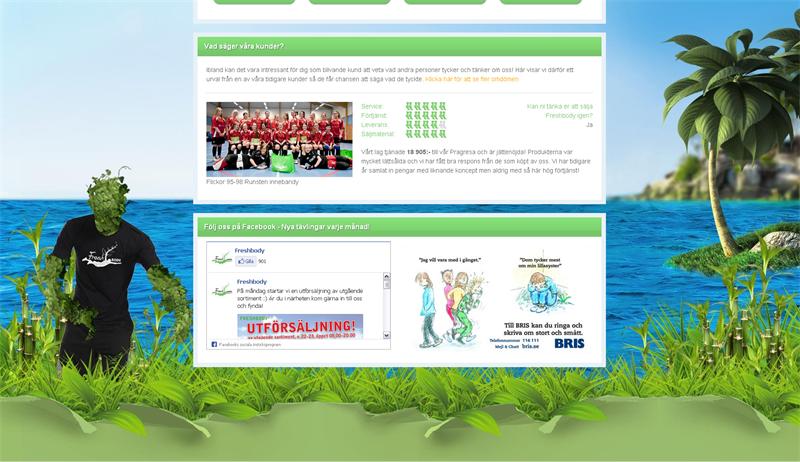 Freshbody utvecklar själv sin egen webbplats men behövde hjälp att ta fram ett djungelliknande tema för deras webbplats. I samarbete med Lundberg & Co levererade vi en bakgrundsbild med mycket grönska.