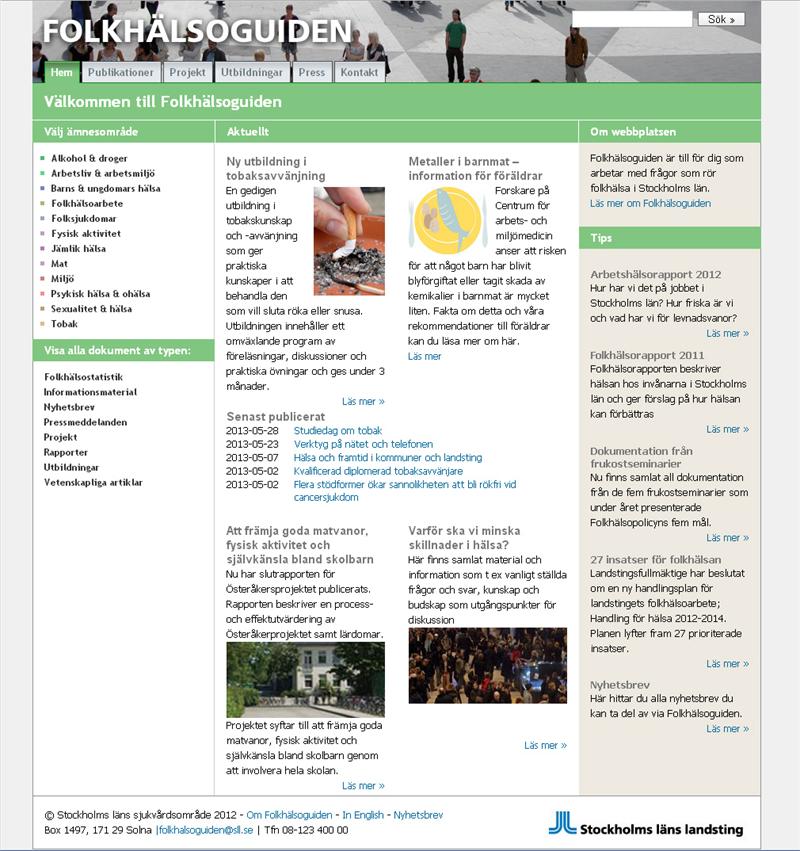 Folkhälsoguiden är en webbplats inom Stockholms läns landsting är en webbplats som riktar sig till alla som arbetar med folkhälsofrågor inom Stockholms län till skillnad mot Vårdguiden som riktar sig till privatpersoner.